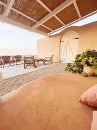 חדר הרחצה כולל שירותים, מגבות לרשות האורחים ואמבטיה ענקית ומרשימה. לחדר הרחצה דלת נוספת הנפתחת לחצר ומאפשרת לאמבטיה להיות גם אמבטיית חוץ חמימה ללילות קרירים או בריכה מרעננת לימים חמים.